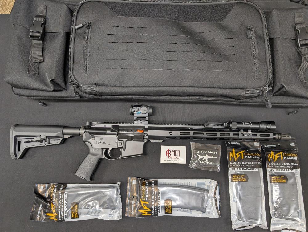Shark Coast Tactical Midnight AR-15 Rifle 5.56mm 30rd Magazine 16 Barrel 15 Handguard Vortex Crossfire & Streamlight Protac with Carry Bag