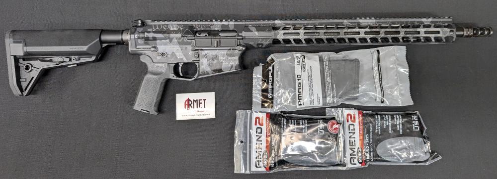 Introducing "We the People" the newest addition to the limited "Stag Select Series". Based on the proven Stag 10 Tactical, this .308 was specifically designed for reaching farther distances. The rifle features a super accurate and well-balanced 18" HBAR barrel with a VG6 muzzle device, encased in a 16"• M-LOK free-float Handguard. It also comes equipped with a Hiperfire RBT trigger, to nearly eliminate creep and provide top-tier, repeatable, performance. Whether you'Tre shooting right or left-handed, you'Tll appreciate the Breach Charging Handle and fully configurable ambidextrous safety making manipulation of the rifle comfortable from any angle. As always, every complete firearm from Stag Arms comes with a Lifetime Transferable Warranty and Infinite Shot Barrel Guarantee.